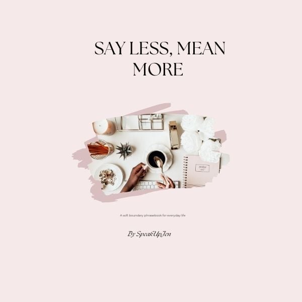 A calm boundary phrasebook for women who are done over-explaining. Nearly 200 soft, plug-and-play responses for everyday life—work, family, emotional labor, texting, and the moments boundaries usually collapse. Use what you need. Let the rest stand.